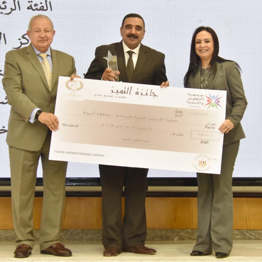 من جانبه، أعرب الدكتور أحمد عباس رئيس مجلس إدارة جمعية الفردوس، عن بالغ شكره وتقديره للدكتورة مايا مرسي، وجمعية التطوير والتنمية، ولجان التحكيم، وكافة الشركاء والداعمين، مؤكداً أن هذا التكريم يعكس الثقة في دور الجمعية ورسالتها الإنسانية في خدمة الإنسان والمجتمع.